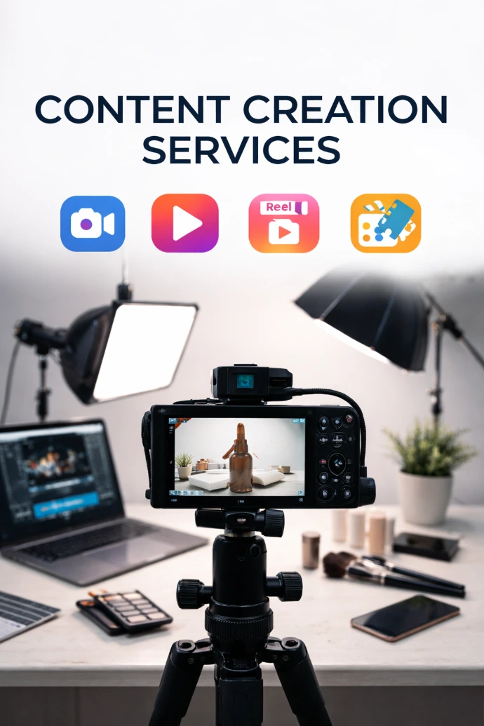 We provide high-quality content creation including promotional videos, reels, product shoots, and brand visuals to strengthen your online presence. Our creative content production helps businesses improve customer trust, social media engagement, and overall digital brand growth.
